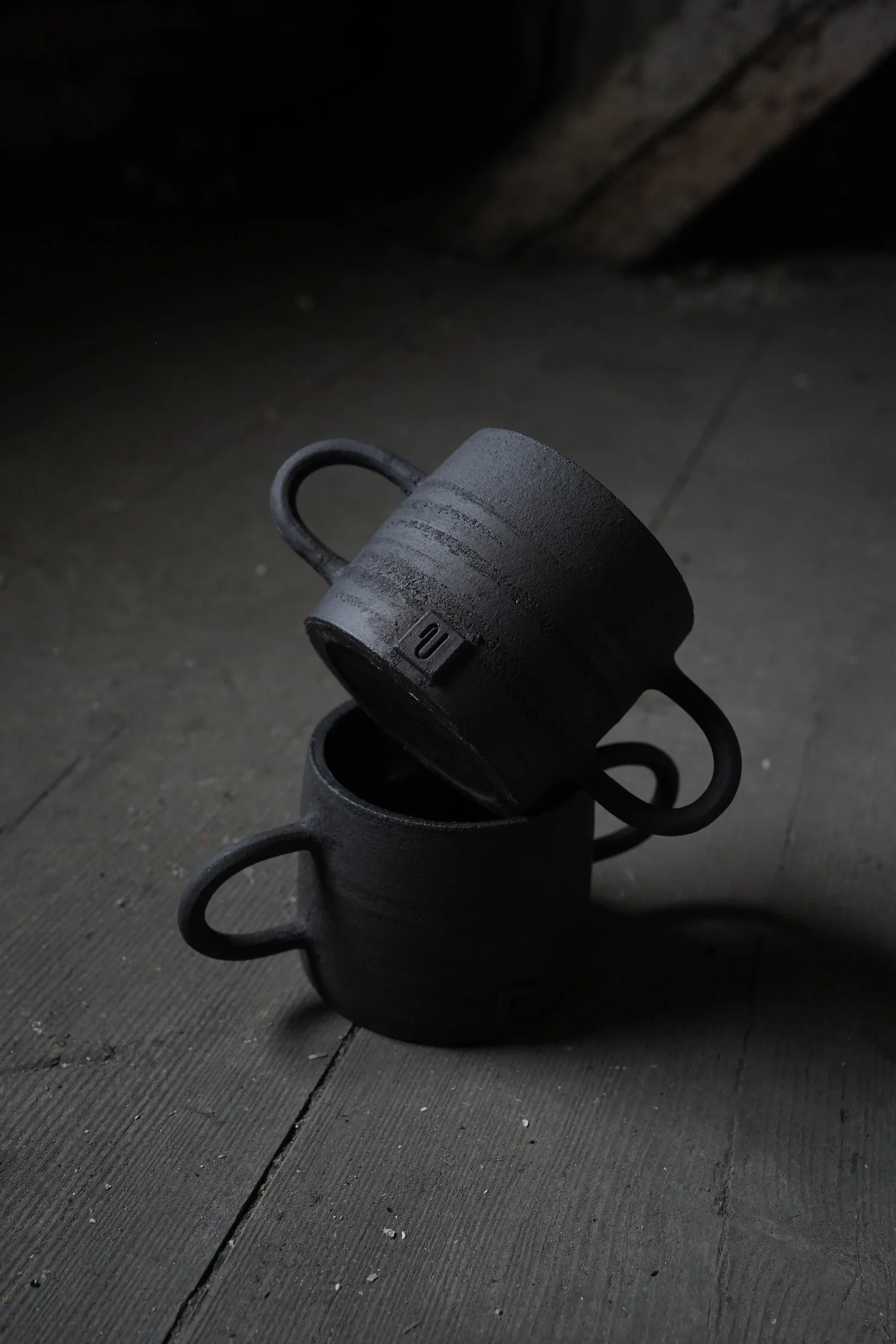 En outre, par souci de neutralité, le grès ne fait pas systématiquement l’objet d’une phase d’émaillage. L’argile que Violaine utilise le plus fréquemment, en l’occurrence le grès noir chamotté, conserve ainsi son caractère brut et naturel. La matière première, sublimée dans le respect et la mise en avant de ses spécificités, offre alors un étonnant jeu de textures reposant sur une double combinaison : une matité d’un noir intense alliée à une sensation de rugosité perceptible à la vue comme au toucher.